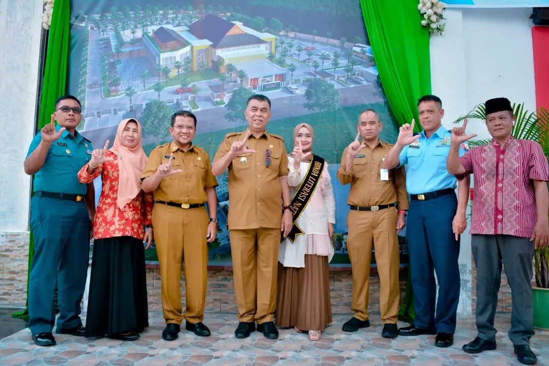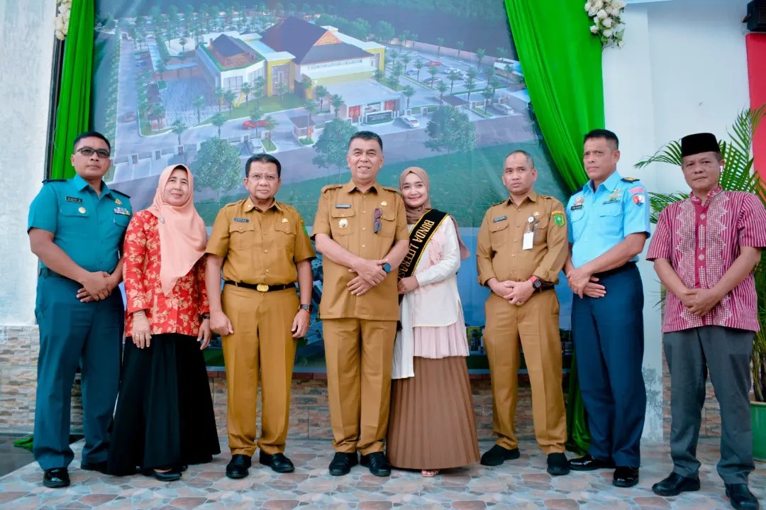 Bupati Natuna membuka selubung rencana perspektif awal design gedung perpustakaan dan kearsipan Kabupaten Natuna 2024,Selasa (23/05).